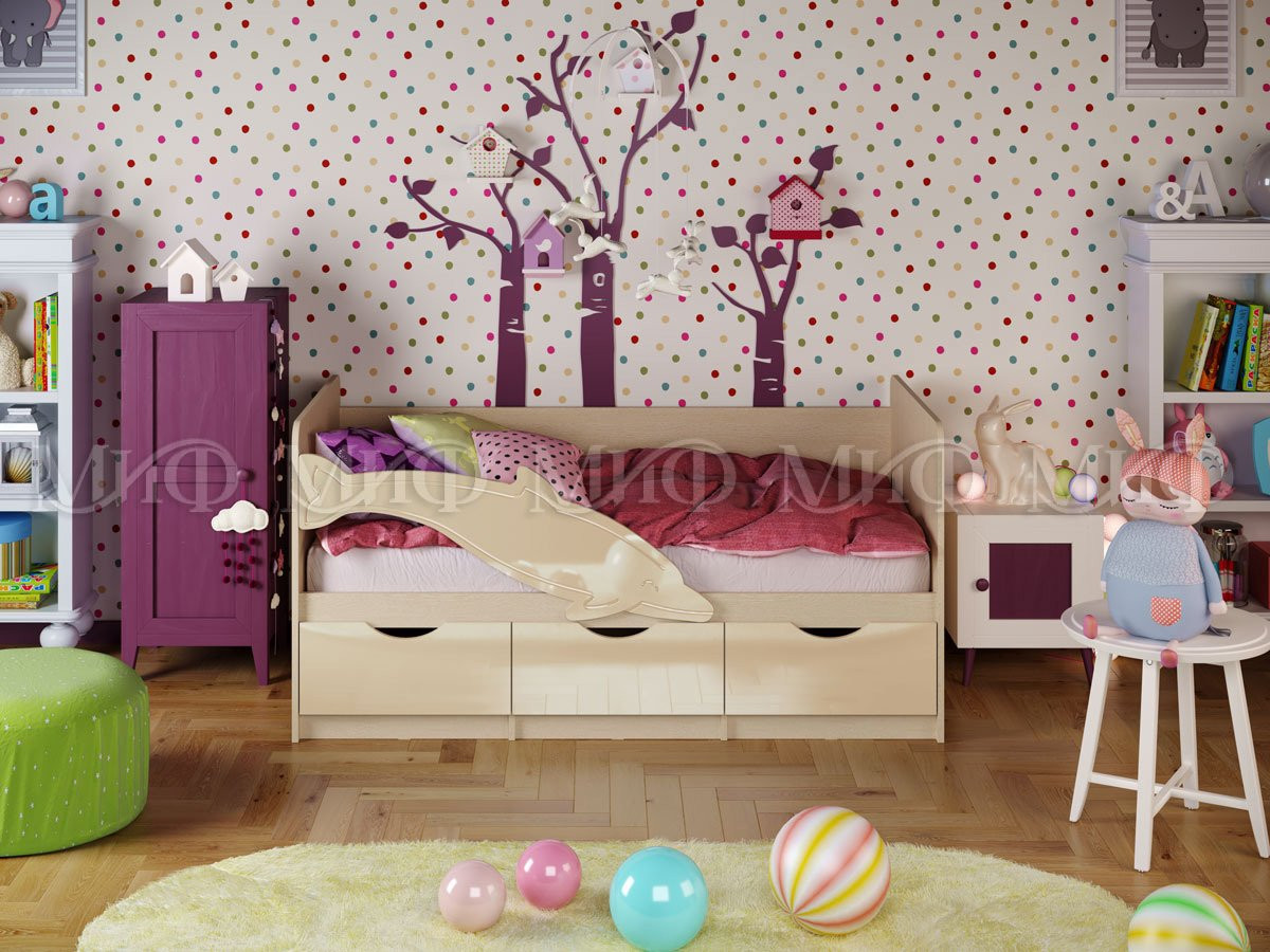 Кроватка Дельфин для Ваших детей благодаря небольшому размеру (длина 1,6м, 1.8м, 2,0 м) компактно разместится в детской комнате, и не займёт игровое пространство. Ящики под кроваткой скроют все коробочки и вещи длительного хранения. Особо радует родителей наличие бортика для безопасного сна. Корпус кроватки выполняется всегда в светлом цвете, а фасады можно выбрать. Даже внешне эта кровать выглядит очень уютной. А ограничительная планка делает ее еще и безопасной. Выбирайте любой цвет фасада для создания гармоничного интерьера.