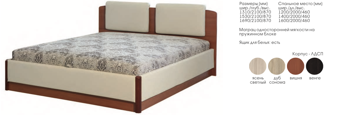 • Спальное Место: Ширина 1200/1400/1600 х Глубина 2000 х Высота 460 мм