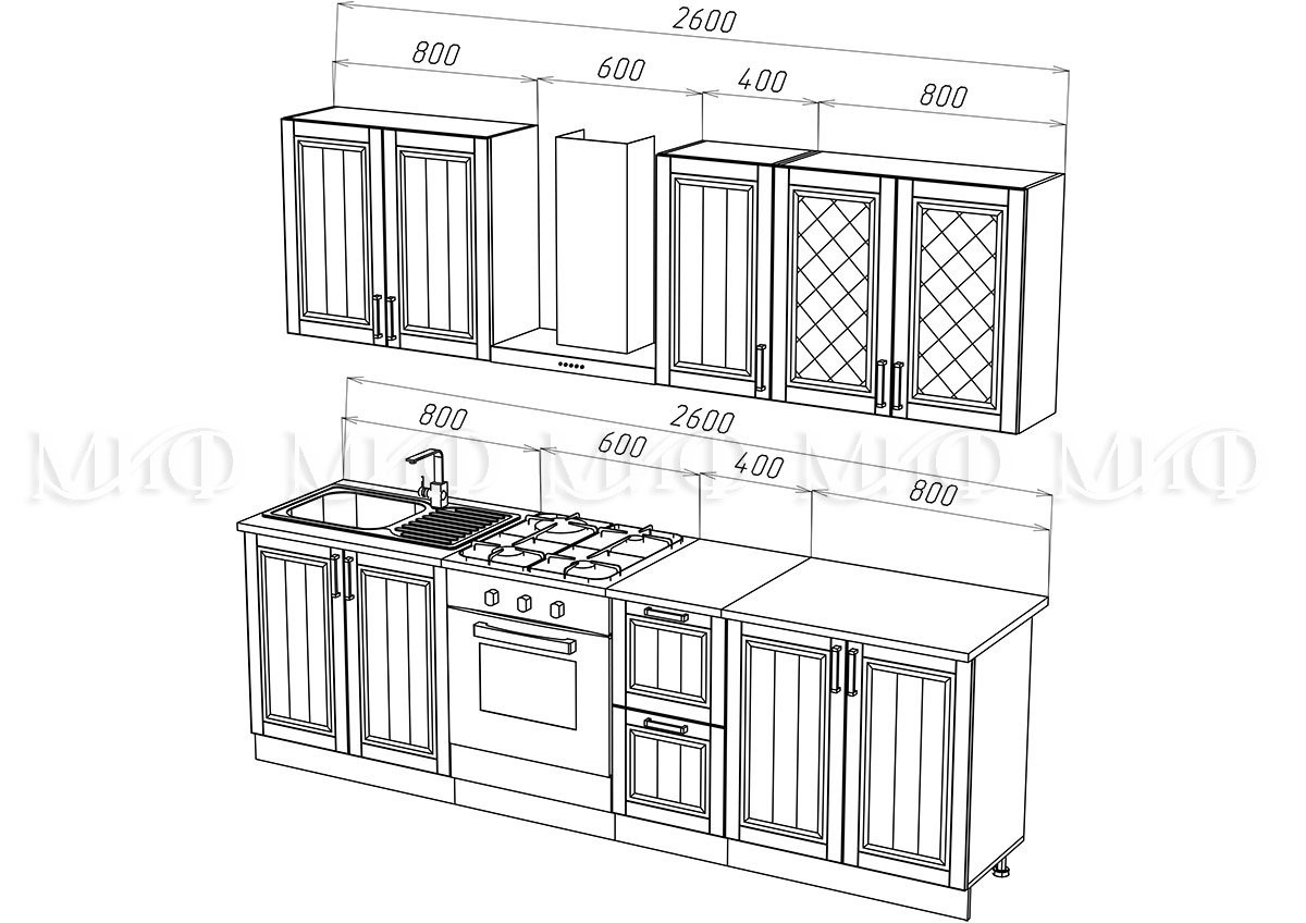 • Глубина шкафов: Верхние 300 мм/Нижние 600 мм/Глубина столешницы 600 мм