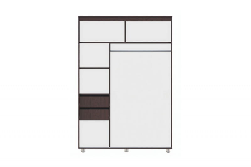 Особенности шкафа-купе: Современный стиль, экологичные материалы, надежная и удобная в использовании фурнитура. Торцы деталей обработаны кромкой ПВХ 0,4 мм. в цвет ЛДСП. Ручка – пластиковая скоба прямоугольная, цвет матовый металлик, вставка в цвет каркаса. Габариты (ШхВхГ): 25х330х25 мм. Выдвижные ящики оснащены роликовыми направляющими длиной 400 мм. Раздвижная система изготовлена из алюминиевого профиля. Легкое перемещение дверей и плавность хода обеспечивается за счет надежных нижних роликов, оснащенных шариковыми подшипниками. Верхние ролики исключают возможность соскальзывания дверей во время эксплуатации. Регулировка зазоров и положения дверей производится с помощью регулировочных винтов на нижних роликах. Для фиксации створок в закрытом положении используется металлический стопор, который фиксируется в направляющих. Щётка-шлегель, приклеенная на торец створок, обеспечивает их бесшумное закрывание и защищает вещи от пыли. Регулируемые опоры высотой 60 мм., позволяют устанавливать шкафо вплотную к стене, не затрагивая напольный плинтус. Сборка изделия является универсальной, расположение секции со штангой возможно как с правой, так и с левой стороны.